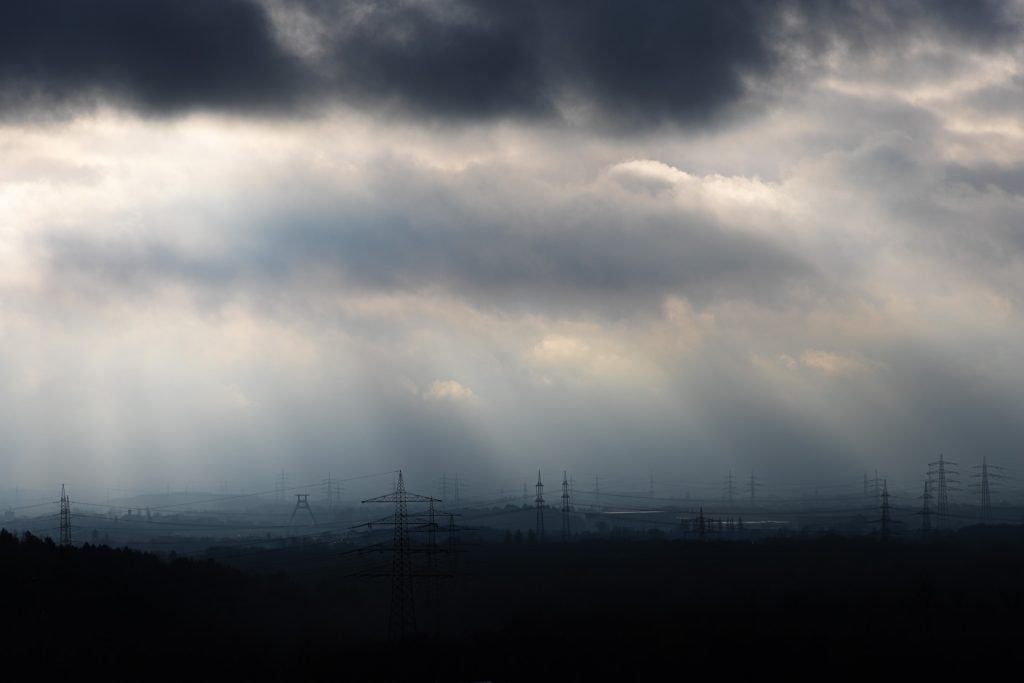Bei Gegenlicht muss die Sonne nicht unbedingt sichtbarer Bestandteil des Bildes sein. Es reicht auch, wenn sie sich hinter Wolken versteckt und so einen hohen Kontrast zwischen hellen Wolken und dunklen Gebäuden ermöglicht.